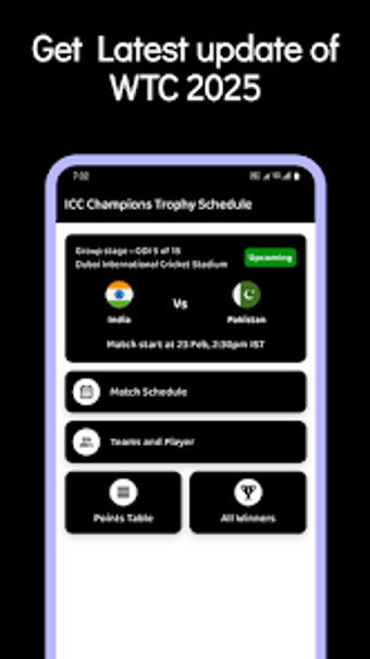 ฟีเจอร์หลักประกอบด้วยการอัปเดตแบบเรียลไทม์เกี่ยวกับการแข่งขันที่จะเกิดขึ้น ตารางคะแนนที่สมบูรณ์ซึ่งสะท้อนถึงผลงานของทีม และอินเทอร์เฟซที่ใช้งานง่ายสำหรับการนำทางที่สะดวก ไม่ว่าคุณจะเป็นผู้ชมทั่วไปหรือผู้ติดตามคริกเก็ตที่ทุ่มเท แอปนี้ทำหน้าที่เป็นแหล่งข้อมูลที่มีค่าในการเชื่อมต่อกับเหตุการณ์ของการแข่งขันและเฉลิมฉลองกีฬา